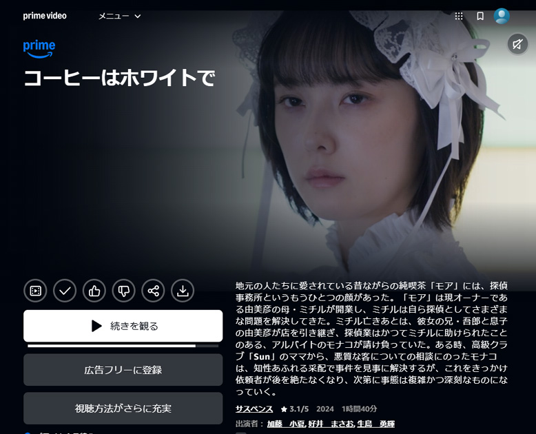 「コーヒーはホワイトで」というオーダーが探偵の依頼の言葉ということなのですが、キナコが白い装束にこだわっている背景や、元のカフェのオーナーが調査の依頼を「コーヒーはホワイトで」と言わせている背景など「白」に意味を持たせている理由は意味深ながらも何も語られていないので、最後までモヤっとしてしまいます。また、「コーヒーはホワイトで」というワードは秘密でもなさそうで、どう広がっているのかもわかりませんし、広がっているならばそんな意味深な言葉で調査をうける意味もわかりません。