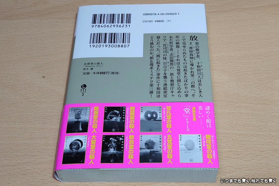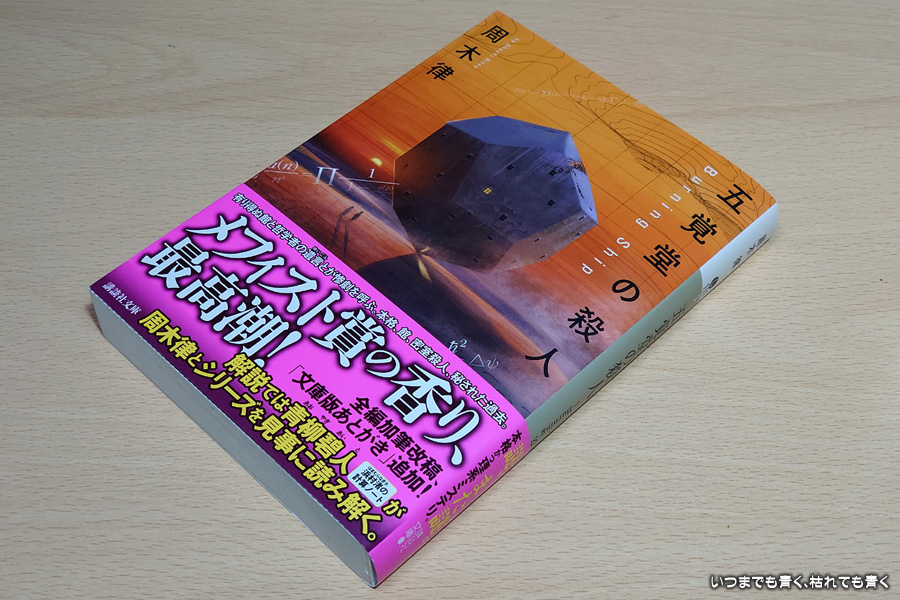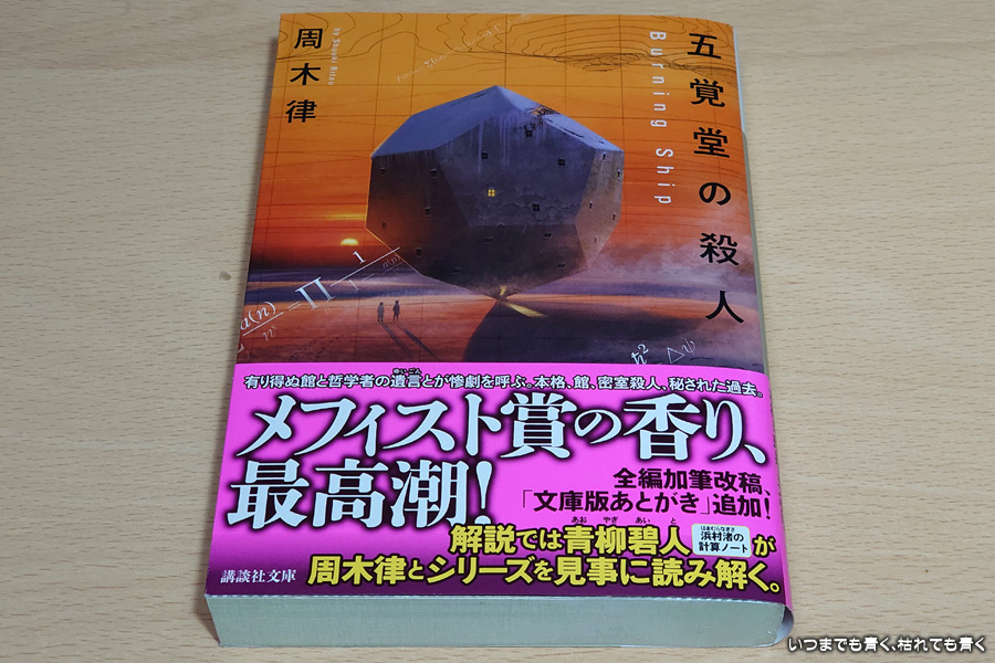 数学の話が難しいのでもう読むのはいいかなと思いつつ、次のストーリーが気になる周期律のお堂シリーズ、今回は第3弾の「五覚堂の殺人」を読みました。