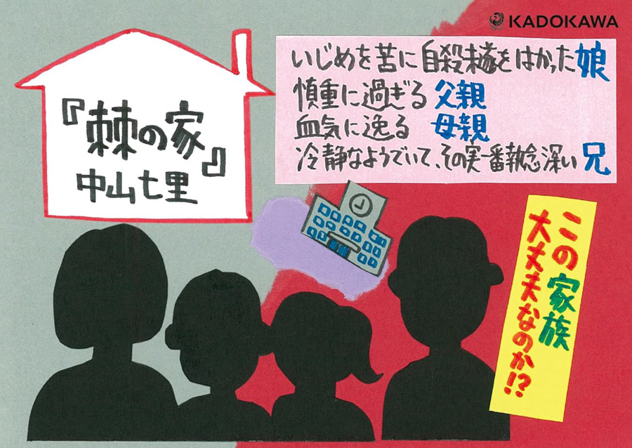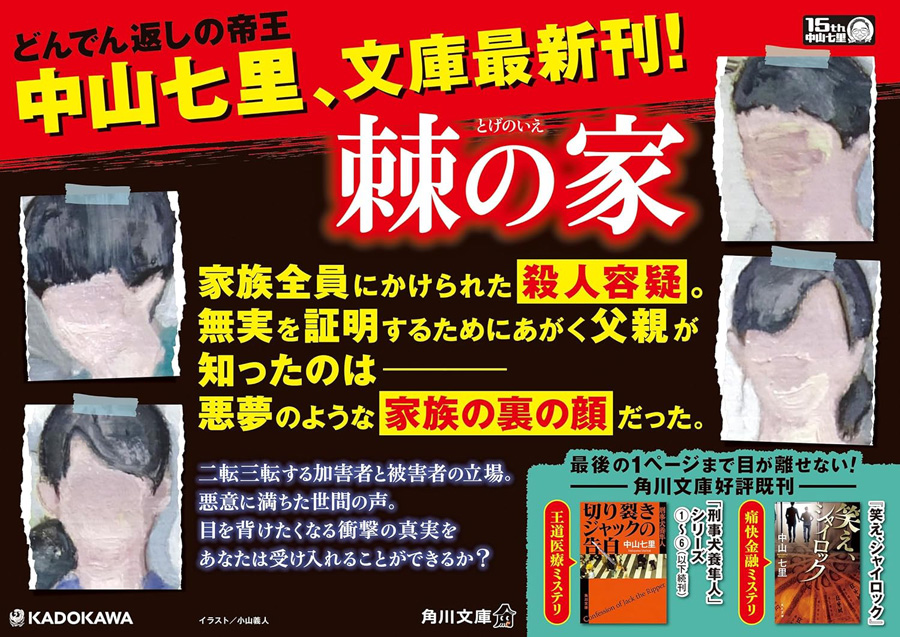 最近、中山七里の作品に傾倒している私です。この作品は2017年に「小説野生時代」に連載されていた「蕁麻のなる家」で2022年に単行本化された時に「棘の家」と改題されたものです。