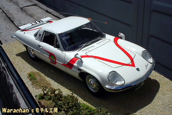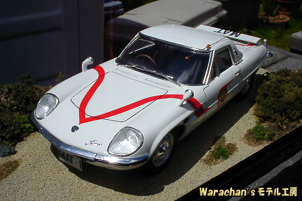 リアクオータあたりの曲面がなんともセクシーで魅力的であり、あらためてベース車であるコスモスポーツの美しさを認識しました。そのうち、コスモスポーツのノーマル仕様も作ろうかなと思っています。なお、ノーマルで組むときも、キットはマットビハイクルのキットを買った方が得です。ノーマル仕様の部品もはいって価格はほぼ同じですから。それになんといっても、キットが新しいです。 |