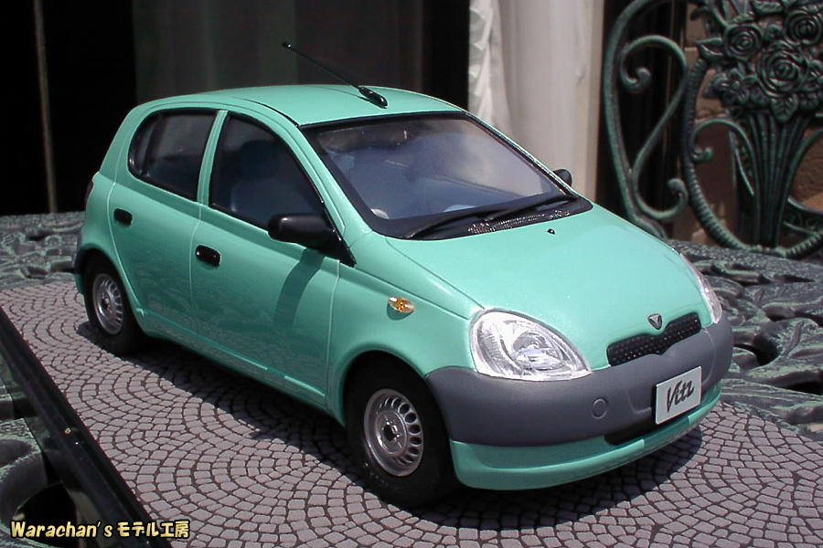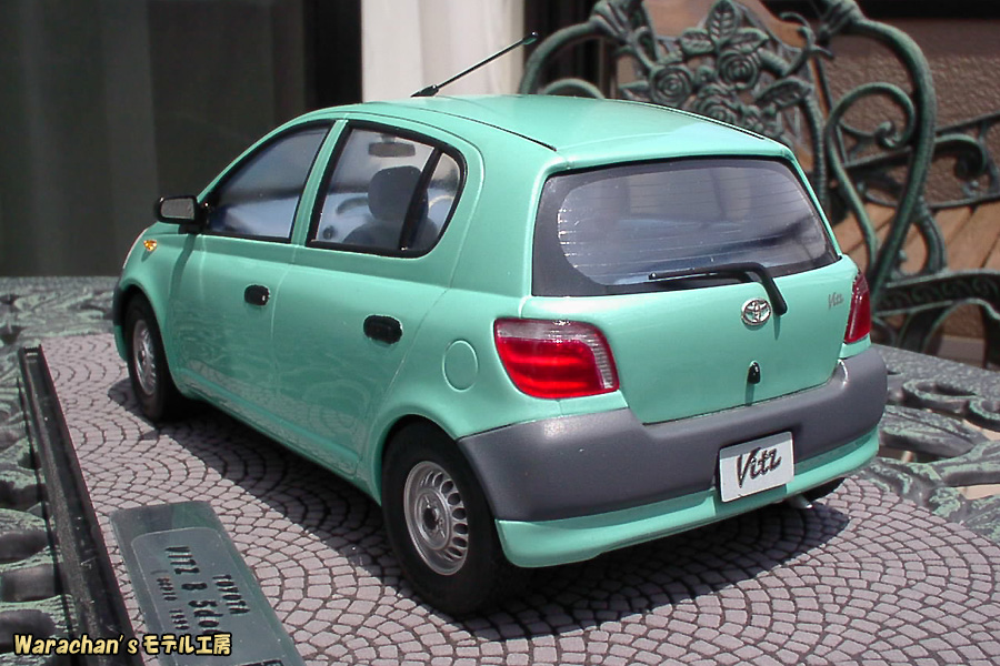 ヴィッツはCAR-25に続き2台目ですが、内装色も異なり、グレードをBとしたことで外装の塗り分けが増え(低グレード車は黒やグレイ部分が多い)、結構手間がかかってしまいました。ヘッドライトレンズ、フロントグリルはそのままではうまくあいませんので、しっかりあわせをしておく必要があります。