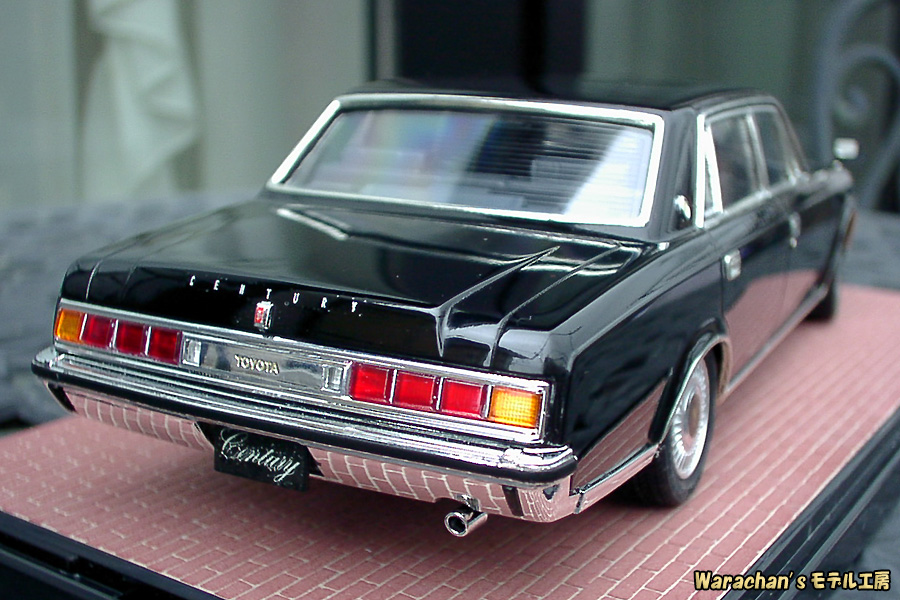 トランクの「CENTURY」というエンブレムは、パーティングラインを消すのに邪魔なので削ってしまい、自作デカールで表現してあります。