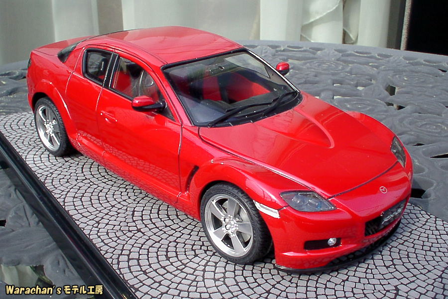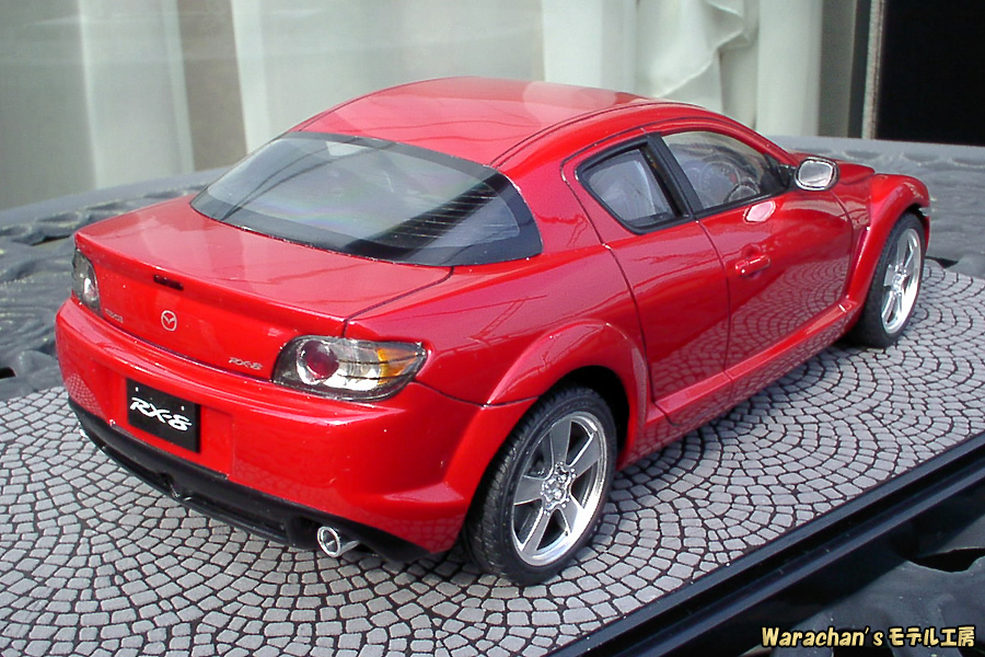 ボディカラーは実車のベロシティレッドマイカですが、マイカが細かくソリッドの赤とそんなに変わりありません。