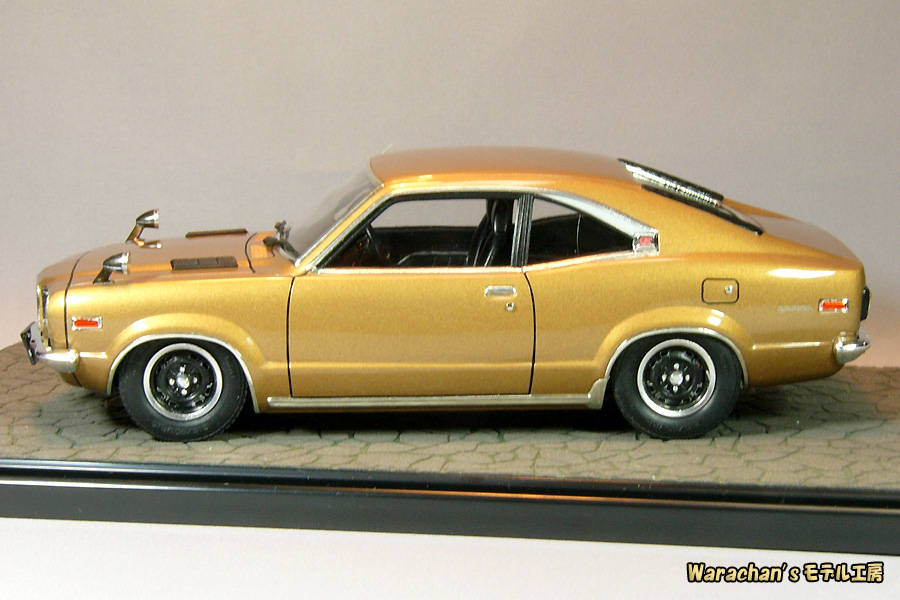 ボディカラーは、箱絵のクルマをイメージに、#9ゴールドをベースに#8のカッパーと少々の白を混ぜたものです。