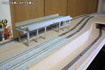 両端は自作、中央は付属橋脚を嵩上げ |