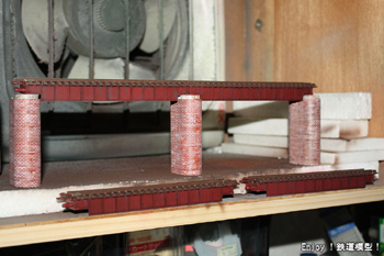 線路を取り外したのを機会に、複線鉄橋の橋脚の塗装をやり直し、トラス部分を取り外し可能にできるように手をいれました。 |
