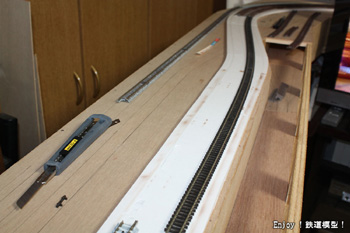 さて、この鉄橋を固定してしまえば、最外周の貨物線の線路敷設が進むことになります。 |
