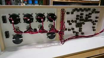ひとつのトグルスイッチにはこれだけの配線をする必要があります。作業はまだまだ続きます。この土日の作業はここまでとなります。 |