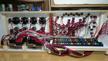 レイアウト側はこのように、24ピンコネクタが4個となります。コントロールパネルとの接続コネクタを間違わないように、カラーシールを張り付けています。 |
