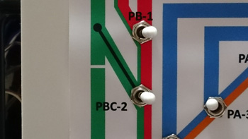 走行用電源供給トグルスイッチとポイント切換用トグルスイッチの配線の仕上がり状況です。 |