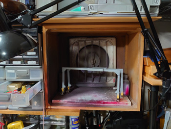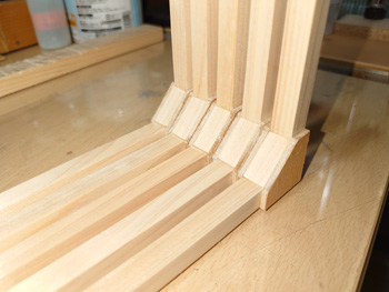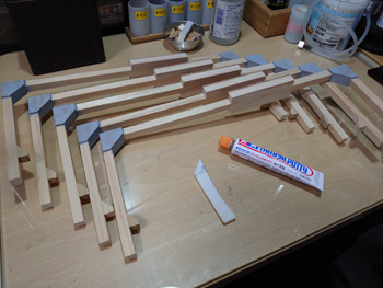 | 仕事が始まると少ししか進められませんが、今夜は補強板の全てへの取り付けと、昨夜急いでやって直角が出ていないところのやり直しを実施。このくらいの精度があればという範囲にはおさまりましたので、これでよしとします。 |