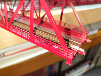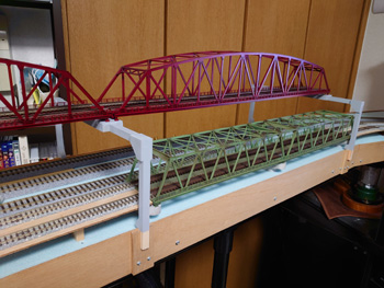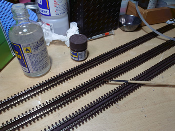 次は大トラス鉄橋の橋脚への固定に向けてレールの塗装を開始。