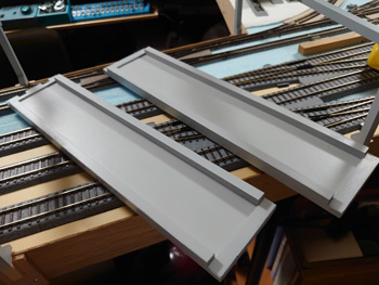 高架線路盤のサーフェサー塗りがやっと終わりました。