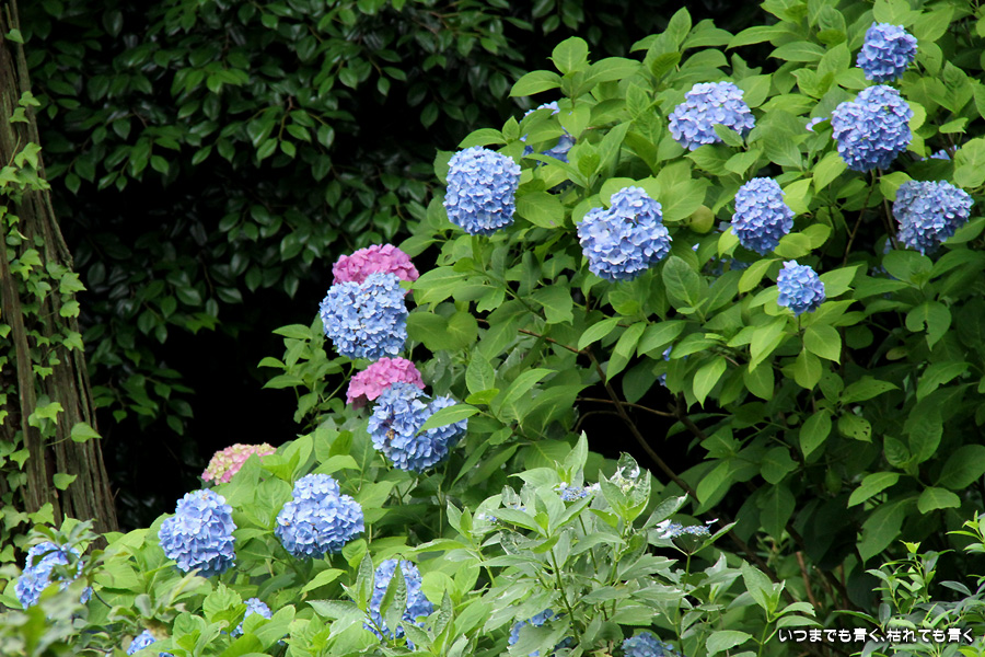 2009年7月に初めて訪れて明月院ブルーの紫陽花に魅せられた私。2年ぶりにその感動を味わおうと思って、明月院に行ってきました。しかし、今年の明月院の青い紫陽花は元気がなく、青色も明月院ブルーにしては薄い感じがしました。数日前からの猛暑にやられていたのと、色が濃くなるにはもう少し時間が必要だったのかも知れません。仕方がありませんね。そのせいか今年は他の紫陽花に目が行って、明月院にも青色の紫陽花だけではなくいろいろな種類の紫陽花があるのだなぁということがわかりました。でもやっぱり、明月院では、明月院ブルーの紫陽花を見たかったですね。残念でした。