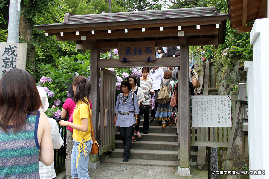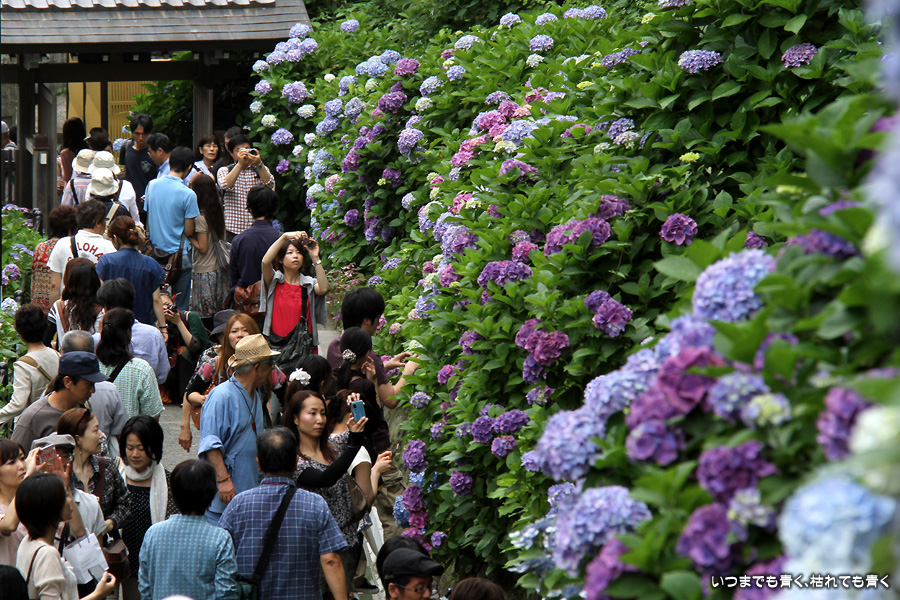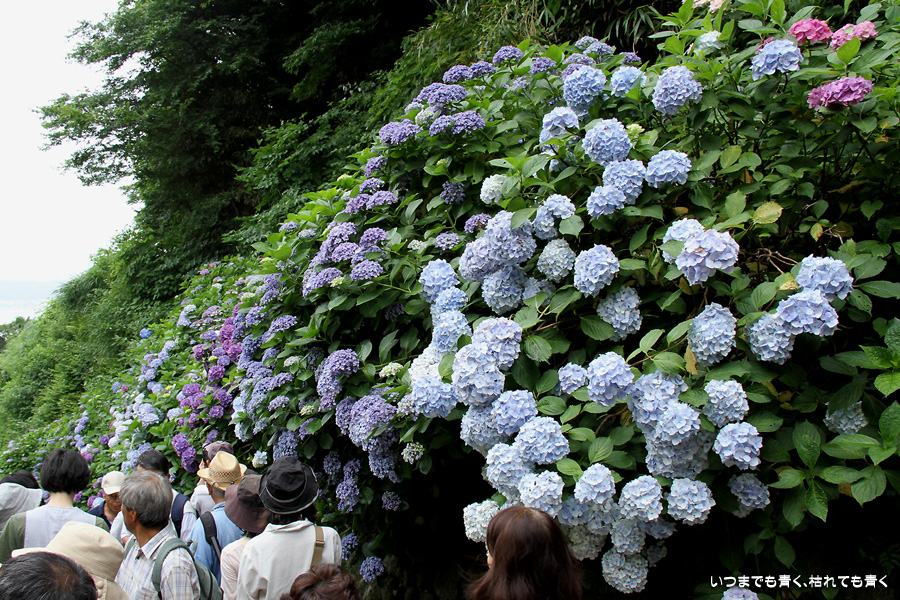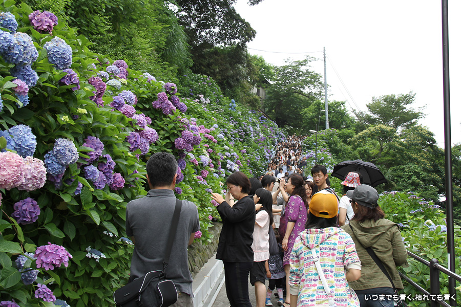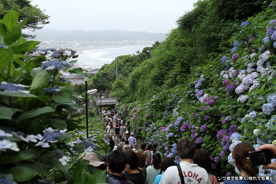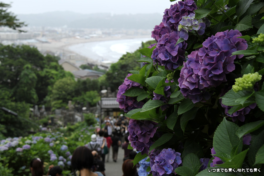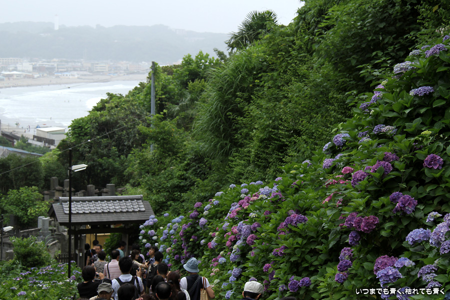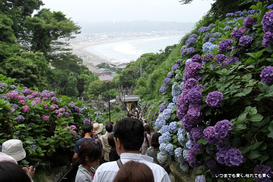 あまりに素晴らしい景色でしたので、一日目に続き二日目もやってきました。今回は、東結界(長谷寺側参道入口)から入り、西結界(極楽寺側参道入口)から出るということにしましたが、振り返って由比ガ浜の見える景色の撮影が多くなるので、結局どちらから入っても同じだとわかりました。景色はとても美しいのですが、結局人が多いのは日が変っても同じでした。