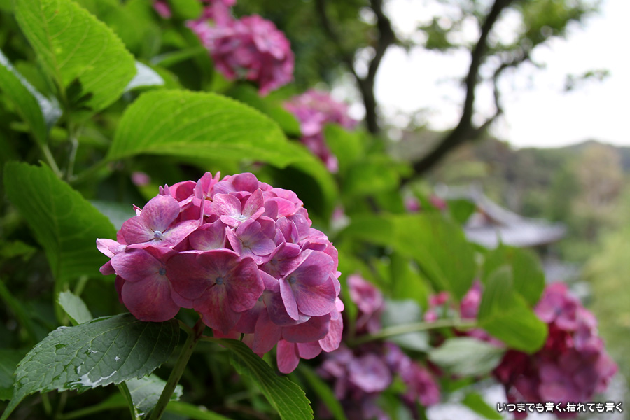 長谷寺の紫陽花の見所である眺望散策路は、時間が遅くなると人が多くなって入場制限がかかります。ゆっくりと時間をかけて散策したいので、二日目の朝一番で訪れました。残念ながら、長谷寺のの個々の紫陽花の花は、すでにアップに耐え切れないほどに傷み始めていました。見頃の時期に対して、ちょっと来るのか遅かったようです。しかし、少し離れて見れば、スケールの大きな紫陽花の群生の風景は、まだまだ見ごたえがあります。