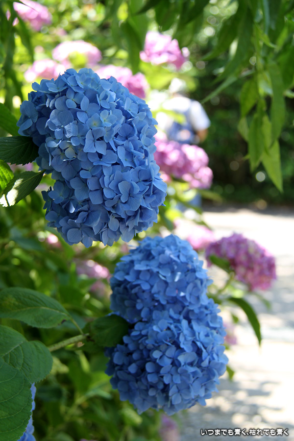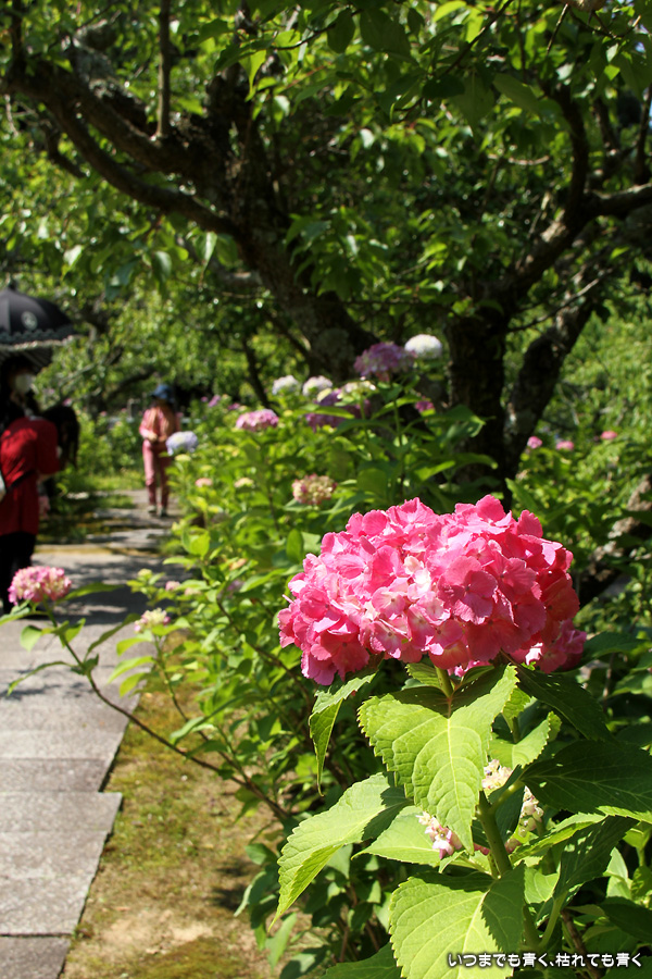 末娘の弓道初段審査が蒲郡であったので、待つ間に奥さんと長女と三人で近くにある三河のあじさい寺、瑞雲山本光寺に行ってきました。あじさいの時期の本光寺には2010年、2011年、2012年と過去に3度来たことがあり、今回で4回目となります。朝一番に訪れましたが、今日はJR東海のさわやかウォーキングのスタート駅が本光寺の近くの三ヶ根駅となっており、そのコースに本光寺が入っていたため、今までに経験したことがない大勢の人出でした。 紫陽花自体は、咲きはじめで若く美しい花ばかりでした。雨が似合うあじさいですが、梅雨の合間の快晴の中での紫陽花もなかなか華やかでいいものです。 今回は、初めて御朱印をいただいてきました。