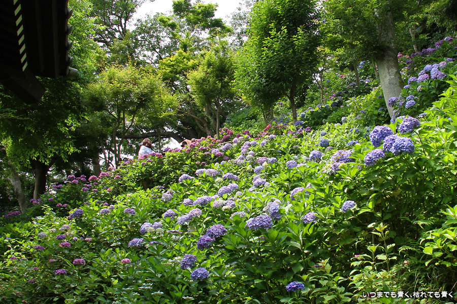 長谷寺の眺望散策路の紫陽花はいつも素晴らしいですが、ここも明月院同様、今回はすでに傷んでいる花が目につきました。選んで撮影したつもりですが、撮った写真を見るとかなり目立つものもありました。