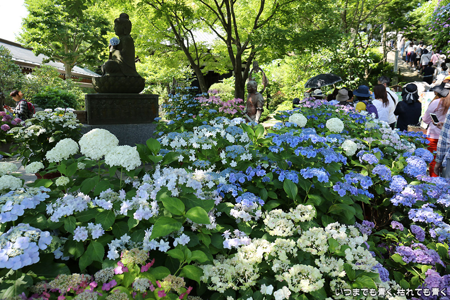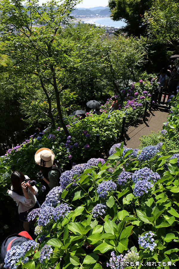 今年も好きな鎌倉の紫陽花を見に行ってきました。鎌倉は人が多く家族は敬遠しているので、今回も鎌倉は一人旅です。昨年9時半に着いて1時間半待ちだった長谷寺、今年は8時半に着くように行ったのですが、それでもあじさい路への入場は30分待ち。相変わらずの人の多さで、写真を撮るのも大変でしたが、紫陽花自体は美しい見頃でとても良かったです。
