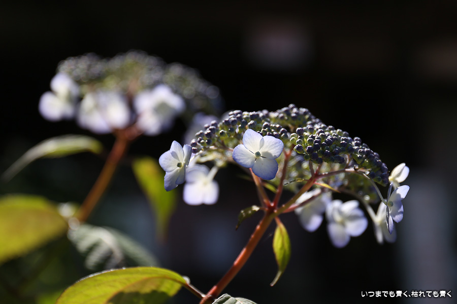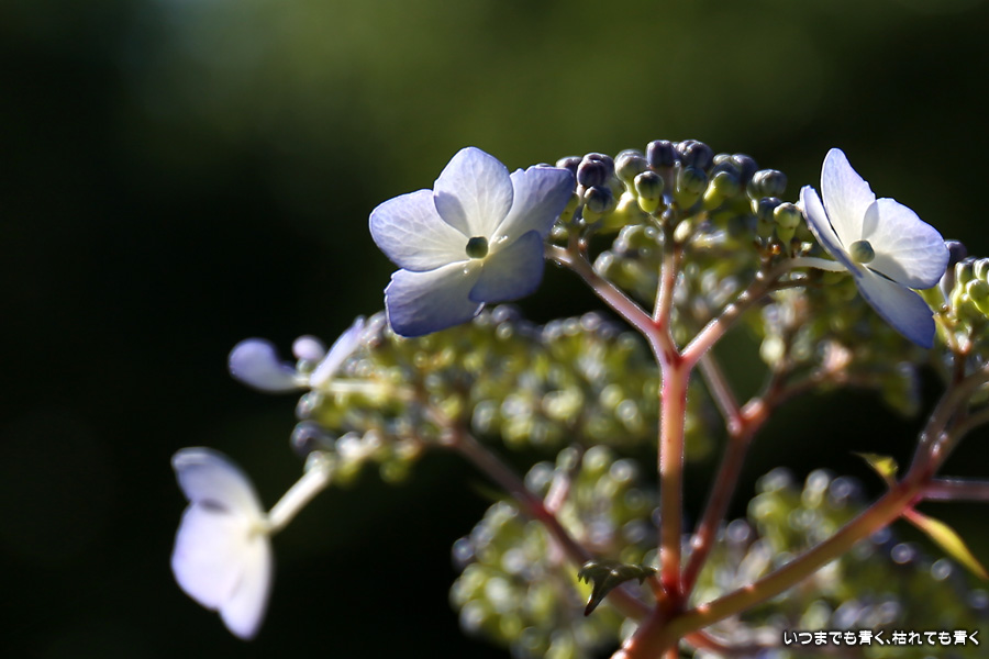 三光寺は「あじさいの山寺」と呼ばれています。紫陽花はよくあるホンアジサイではなくガク咲きのヤマアジサイと呼ばれる控えめな種類が多く、派手なあじさい寺という趣ではありません。ただ、訪れる時期によっては華やかな情景を見ることができるのかもしれません。ヤマアジサイはひとつひとつを丁寧に撮影した方がいいかなと思い、そのような写真が多くなってしまいました。