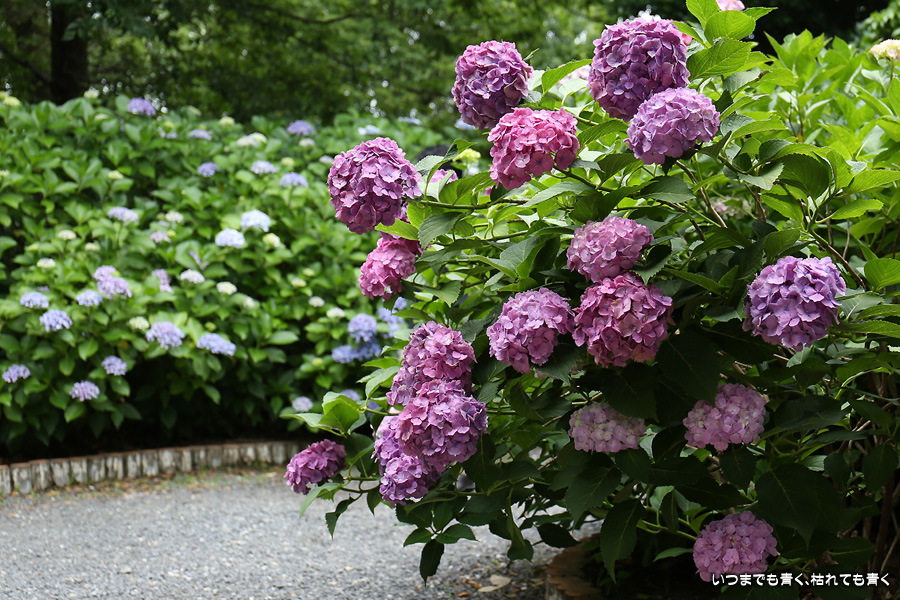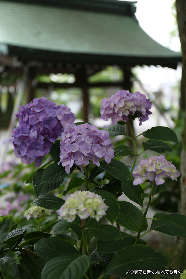 テレビのニュースで紫陽花がたくさん咲いていることを知り、初めて訪れました。期待以上の素晴らしい紫陽花でした。広い境内にはたくさんの種類の紫陽花が植えられていて、本殿の裏は紫陽花園になっています。訪れた時期も良かったのかどの花も傷みの無い美しい花ばかりでしたし、境内の風景に紫陽花が良く似合っていて写真も絵になりました。ただ、暑さと湿気で撮影は吹き出す汗との戦いでもありました。