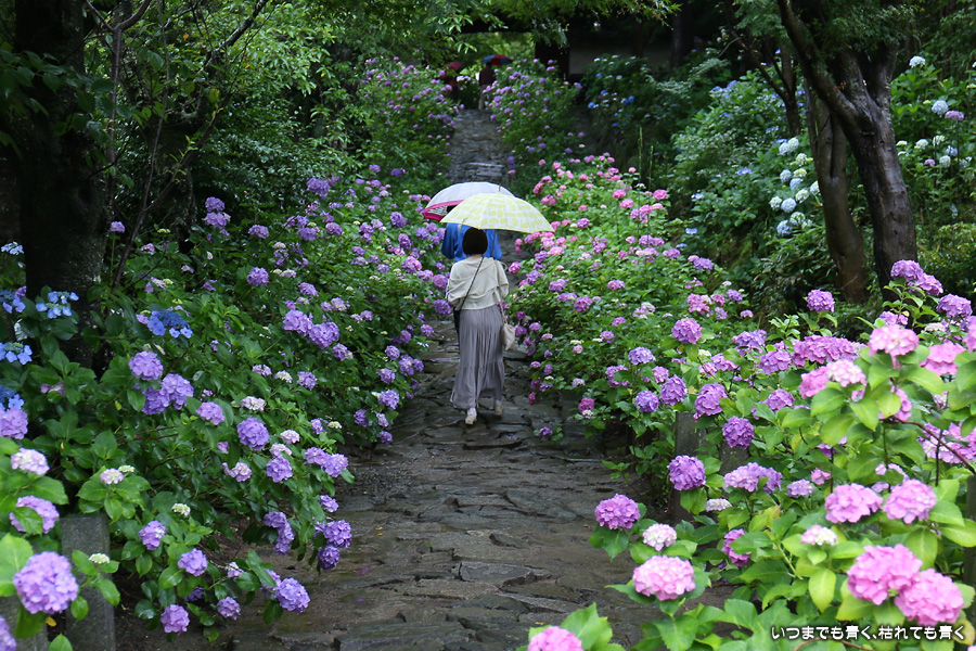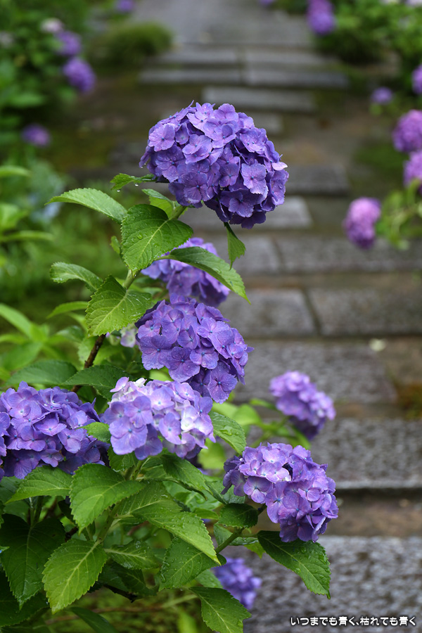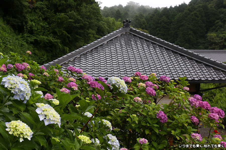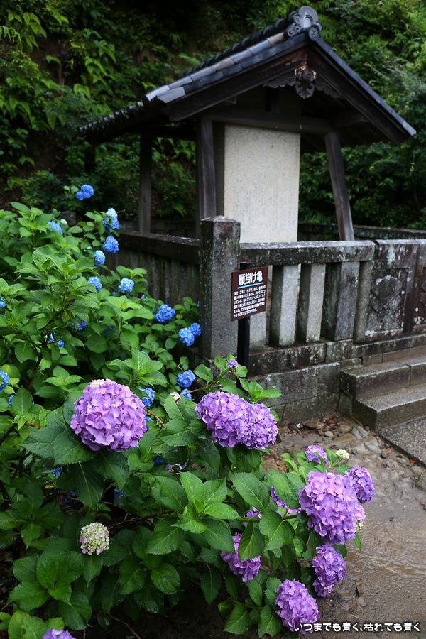 形原温泉あじさいの里の帰りに雨の本光寺の紫陽花も見たくて立ち寄りました。雨の日の撮影は大変ですが、紫陽花は雨の日のほうが美しく写真におさめることができたと思います。ひととおり撮影した後にもう一度境内に戻ろうとした時にアクシデントがありました。団体の大勢のおばちゃんを追い抜こうとして石畳からぬかるみに足を置いた瞬間、滑って転んで尻もちをついてしまいました。おばちゃんたち、「大丈夫?」と心配してくださるので「服はよごれましたが大丈夫です!」と言ってお礼を言って立ち去りましたが、お尻は泥だらけになり、膝を捻って少し痛めてしまいました。無理に追い越そうとしたこと、靴が古くなって滑りやすくなっていたことが良くなかったです。大怪我しなくて良かったです。
