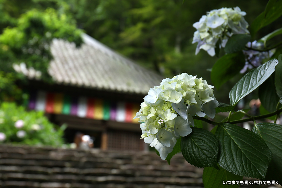 長谷寺の嵐の坂の「あぢさゐ回廊」以外の場所(一部嵐の坂の脇の写真もあります)での紫陽花です。紫陽花の花の写真だけならどこでも撮れますが、紫陽花の名所での写真は、その場所でしか撮れない写真を心がけています。そういう意味では今年の長谷寺の紫陽花の写真は、長谷寺ならではの写真がいろいろと撮れて楽しい撮影でした。