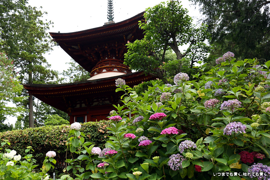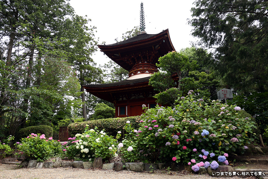 久米寺は、近鉄南大阪線を挟んで橿原神宮の南側にある寺院です。紫陽花の名所ということで今回初めて訪れました。境内はとても広々しているのに、紫陽花はどこにも見当たらず最初はちょっと戸惑いました。久米寺の紫陽花は、本堂裏側に紫陽花園があり、そこにたくさんの紫陽花が植えられています。紫陽花園は有料(400円)となりますが、記念に紫陽花園のタオルをいただけます。紫陽花園の紫陽花は、咲いている花が少なくまばらで、時期が早すぎるのか今年はこんな咲き具合なのかわかりませんが寂しい感じでした。多宝塔のまわりももう少したくさん咲いていると絵になるのに残念な感じでした。そんな状況でしたので、写真はきれいな花を探しての一輪写真が多くなってしまいました。