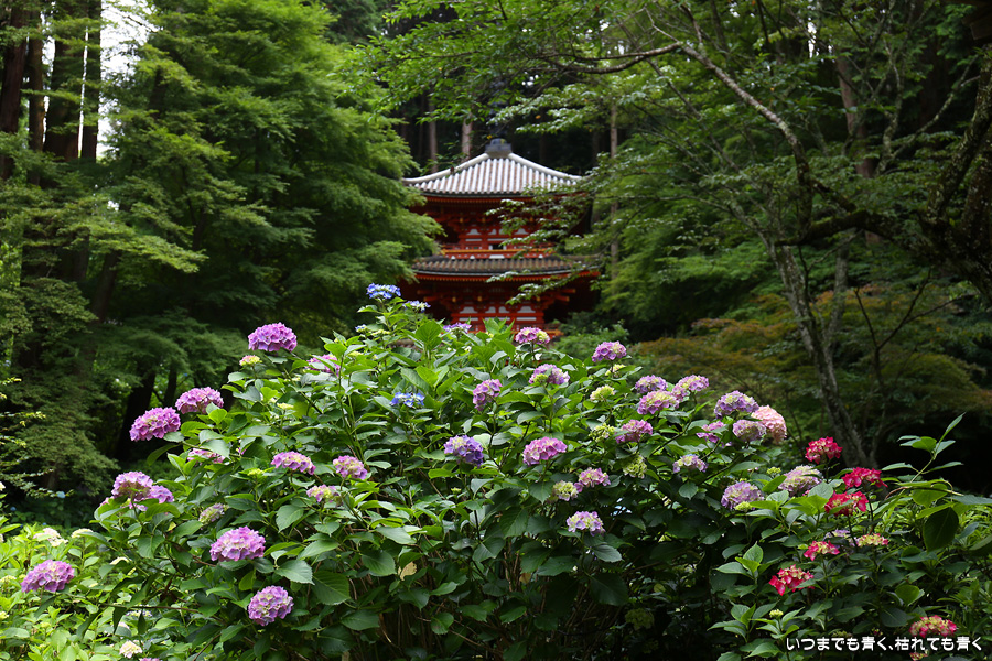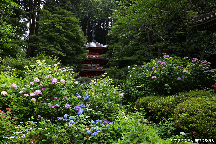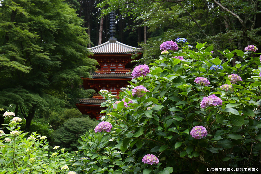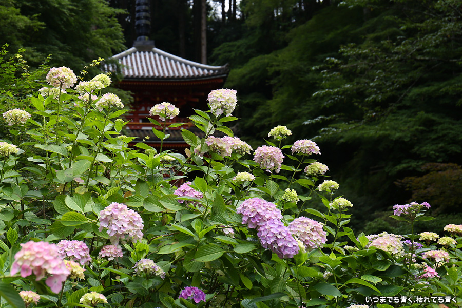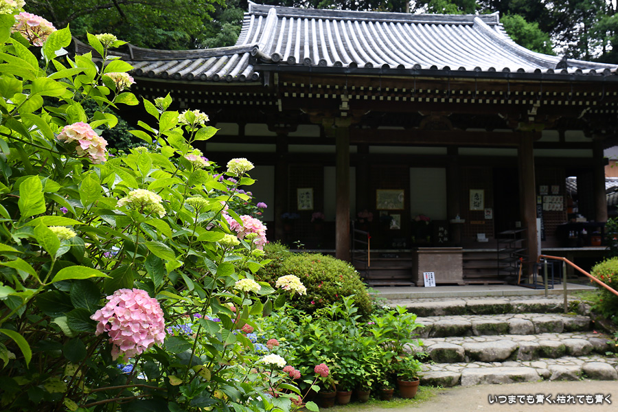 岩船寺は5年ぶりになります。毎年訪れたいとは思っているのですが、場所がちょっと中途半端なところ(奈良市には近いのですが)なので行くにはちょっと構えてしまいます。岩船寺の境内は広くはないのですが、三重塔と紫陽花のコラボ写真が撮れることで有名です。今回は時間が押してしまっていて40分くらいの滞在時間しか取れず、ゆっくりと写真を撮っている時間がなかったのが残念でした。紫陽花はまだ色がついていないものや小さいものも目立ち、時期的にはもう少しあとの方が良かったのかも知れません。