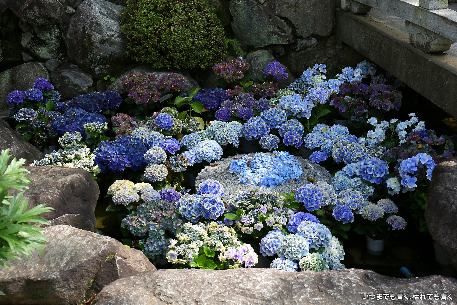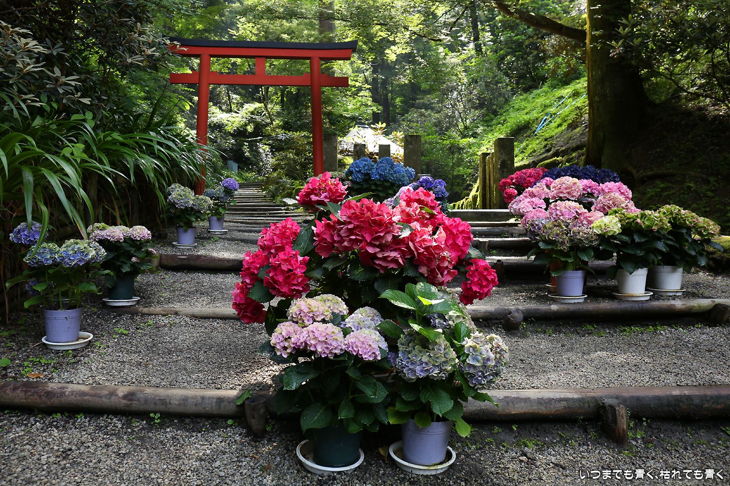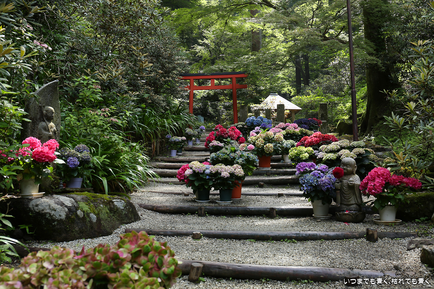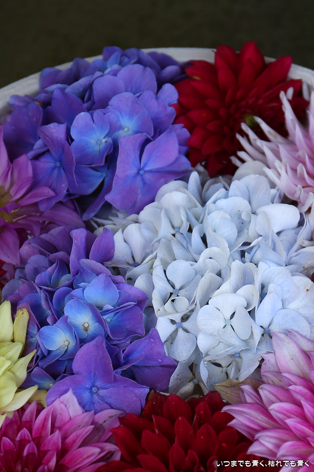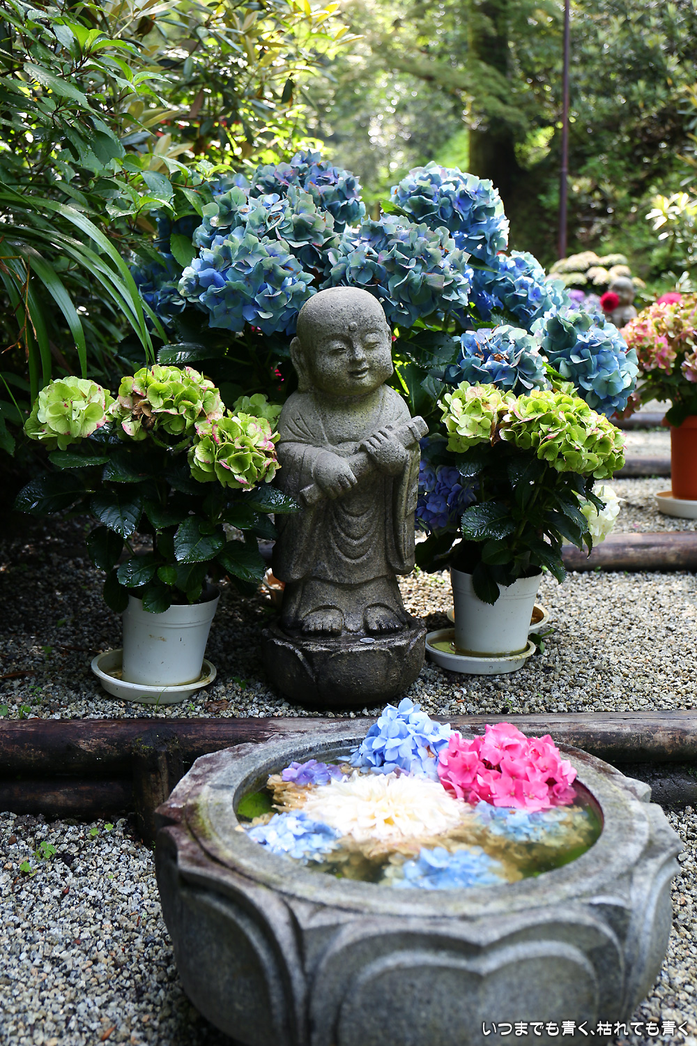 岡寺は石楠花の時期に来たことがありますが、今回は岡寺でおこなわれている大和三大観音「あぢさゐ回廊」を見にやってきました。鉢植えの紫陽花は、すでに変色しているのもあり、鉢植えの数も開催当初よりは少なくなっているのかなと思いました。ただ、訪れる人もまばらで、人のはいらない写真を撮るのは容易で、いろいろとアングルを変えて撮影を楽しみました。似通っている写真もありますが、微妙に変えて撮影しています。来年来る機会があれば、もう少し早めに訪れようと思います。「あぢさゐ回廊」の切り絵の御朱印は手に入れましたが、大和三大観音の御朱印を貼る台紙はすでに売り切れでした。なお、岡寺は紫陽花だけではなく、天竺牡丹(ダリア)も有名で、紫陽花と一緒に手水舎や鉢に浮かべられていて美しかったです。