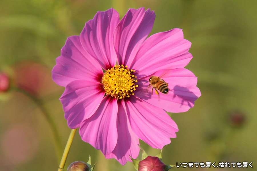 愛知牧場にコスモス畑があるそうですので、コスモスを見ようということで行くことになりました。行って見ると、2ヶ所に広いコスモス畑がありましたが、まだ蕾が多くてこれからが見頃のようです。しかし、咲き始めた花はしっかりしていてきれいですので、しっかりと写真を撮ってきました。ミツバチが多く飛び交っていましたので、コスモスとミツバチのコラボ写真が多くなりました。