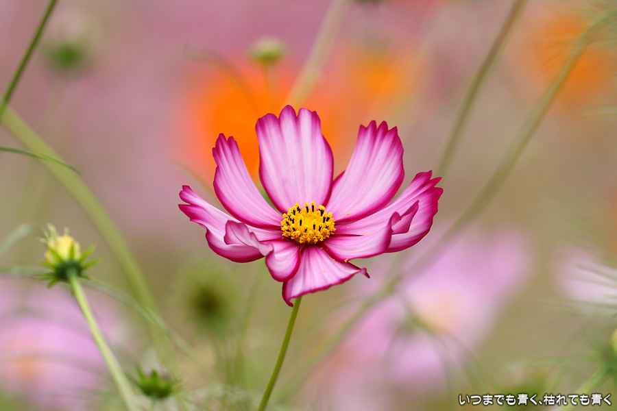 ふたたび訪れた千足町のコスモス畑です。二週間前に訪れた時は、咲いている花が少なくてこれからという感じでしたが、今日は満開で色鮮やかな美しいコスモス畑になっていました。ただ、今日も風が強くて写真撮影には適さなかったのが残念でした。なお、昨夜落としてしまった機材が心配だったので、今日重点的に使ってみましたが、まったく問題ありませんでした。良かったです。