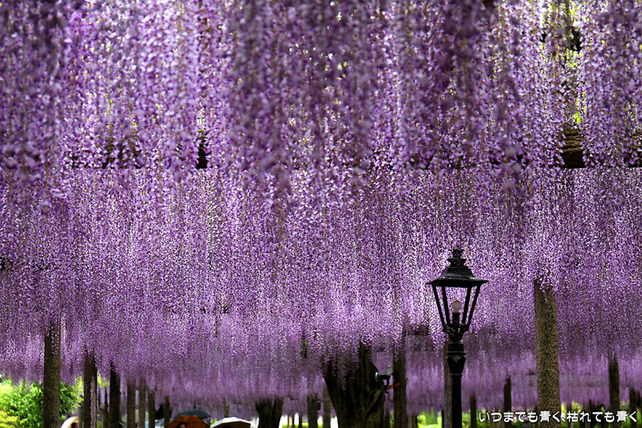 2018年4月20日に撮影した、愛知・津島の天王川公園で開催されている「尾張津島藤まつり」の藤の写真です。