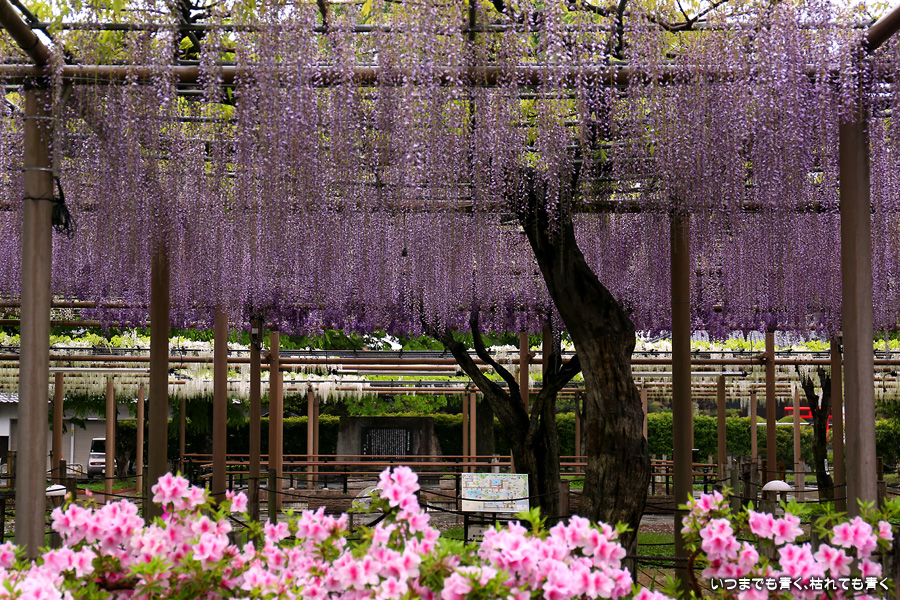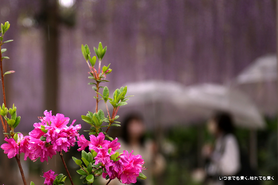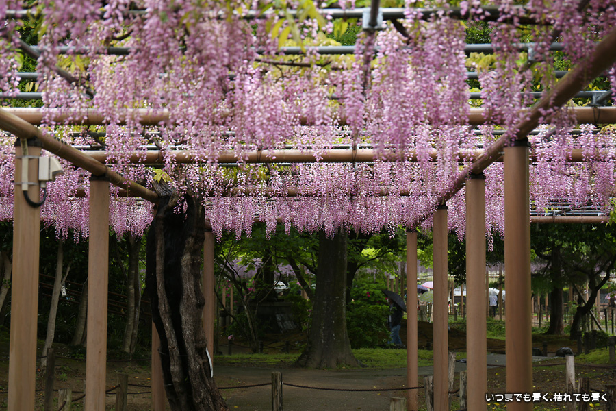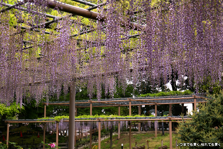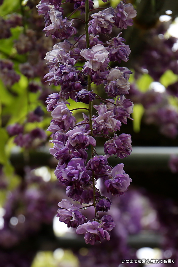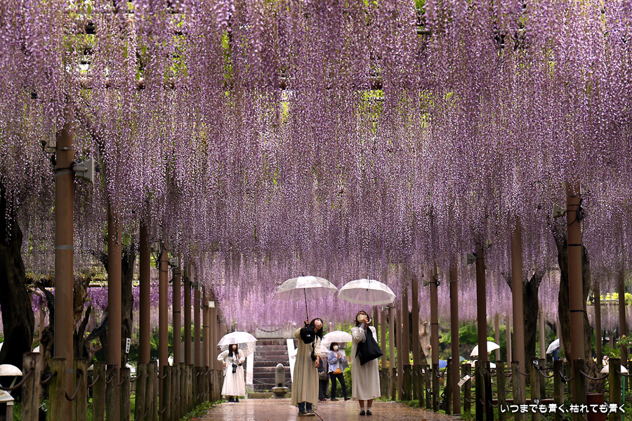 「曼陀羅寺公園」のふじは有名で今週末が見頃だと聞いたので、雨降る日でしたが行ってきました。曼陀羅寺は初めてですが、境内に曼陀羅寺公園があって、公園内の藤棚の面積は4,700uと紹介されています。ふじの種類も多くて、いろんなふじを楽しむことができます。写真撮影は、ふじの花自体は雨が似合う花ですが、カメラが雨で濡れてしまうために傘をさして立ったままの撮影が多くて、変化をつけた写真の撮影は難しい状況でした。