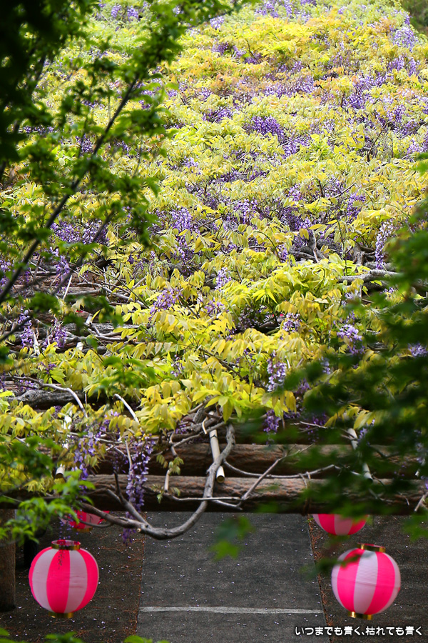 城藤園も近場の行っていない藤の名所を探して見つけたところです。城藤園という名称ですが、城ヶ入子安観音の参道の100mほどの藤棚のことのようです。提灯が下げてありましたので、藤まつりのイベントがあるのかもしれません。藤の花は長さが短くて藤棚から垂れ下がる状態ではないにもかかわらずすでに落ちた花も多くて、気候のせいなのかも知れません。ちょっと残念な状況でした。