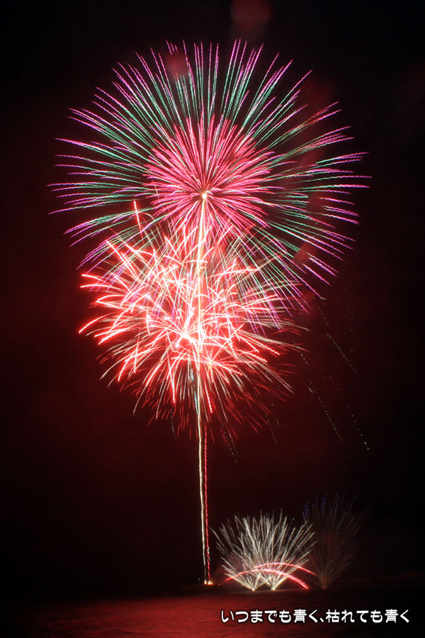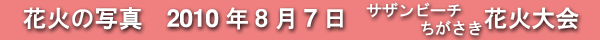 2010年8月7日に開催された、神奈川・茅ヶ崎の「サザンビーチちがさき花火大会」の花火の写真です。