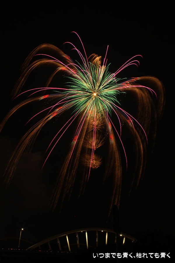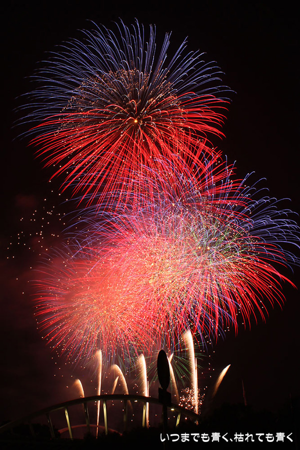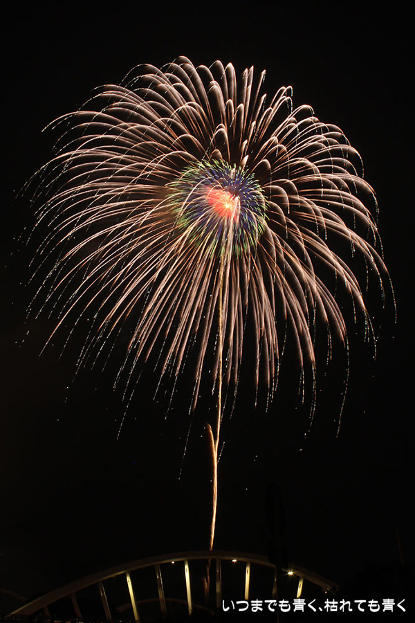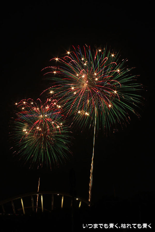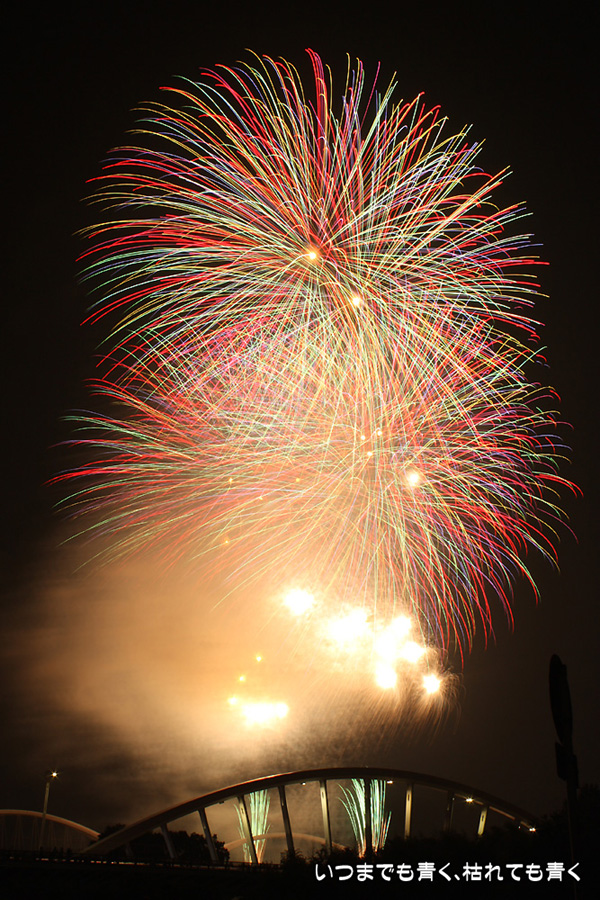 今年は奥さんと長女の都合が悪かったので、久しぶりに末娘とふたりでの見物です。私はカメラと三脚を持っていき花火見物というより花火撮影です。始まる30分くらい前に現地に行ったので、思うような場所が確保できず、レンズの先に道路交通標識がある場所となってしまいました。でも、写真撮影も気楽に楽しむのが信条なので、あまり細かくこだわらずに記念に残せればという感じで撮影しました。花火撮影にも慣れてきたのか、年々シャープな写真を撮れるようになってきたかなと思いますが、花火を見ながら写真の出来上がりを予測してシャッターを切る時間を考えるのは相変わらず難しいです。写真を撮りながら花火を楽しんでいると、2時間なんてあっという間でした。すでに相当暑い日が続いていますが、これで夏本番です。