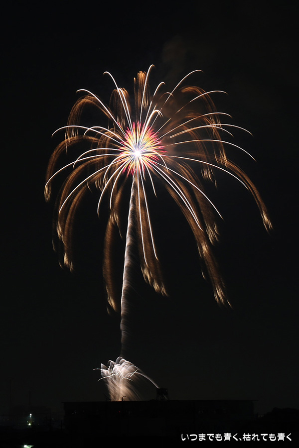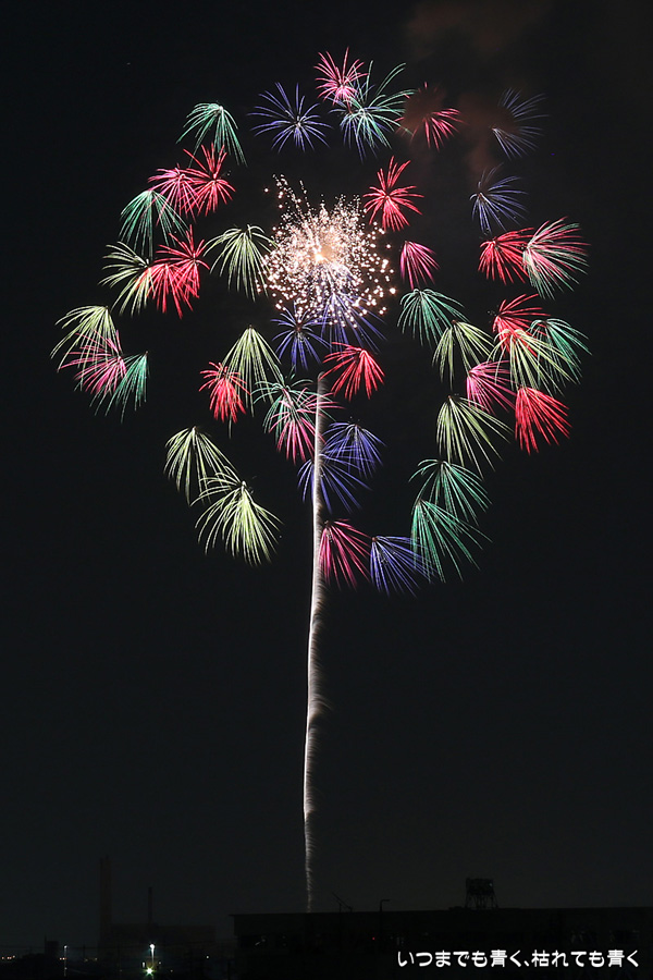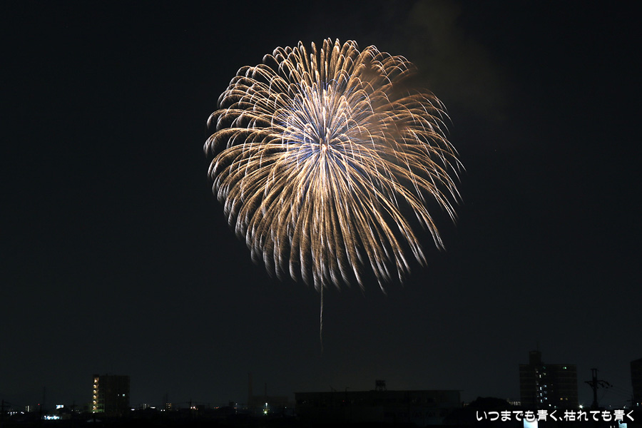 2015年8月1日に開催された、愛知・岡崎の「岡崎城下家康公夏まつり花火大会」の花火の写真です。