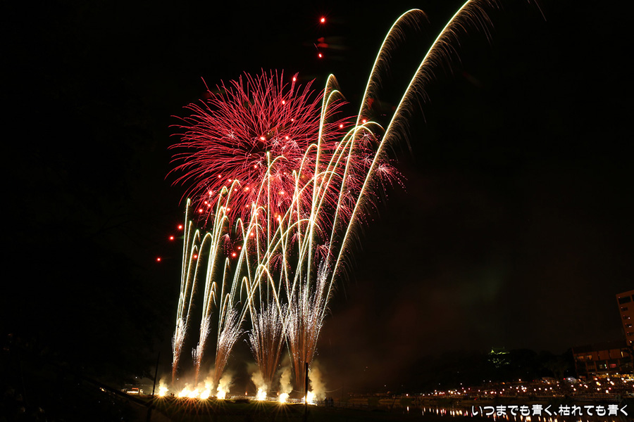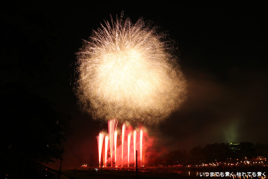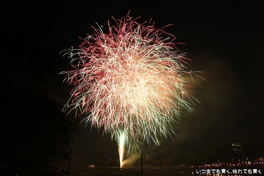 2016年8月6日に開催された、愛知・岡崎の「岡崎城下家康公夏まつり花火大会」の花火の写真です。