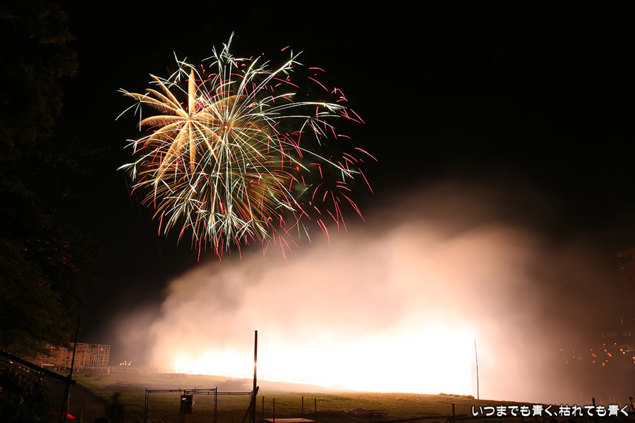 にあげました。花火鑑賞だけでなく、写真撮影趣味のおじさんたちとも話をしたりして本当に楽しいひとときでした。また来年も同じ場所で会いましょうと約束して別れましたが、病気が治り来年も行くことができればいいのですけどね。