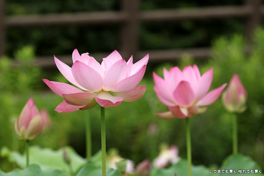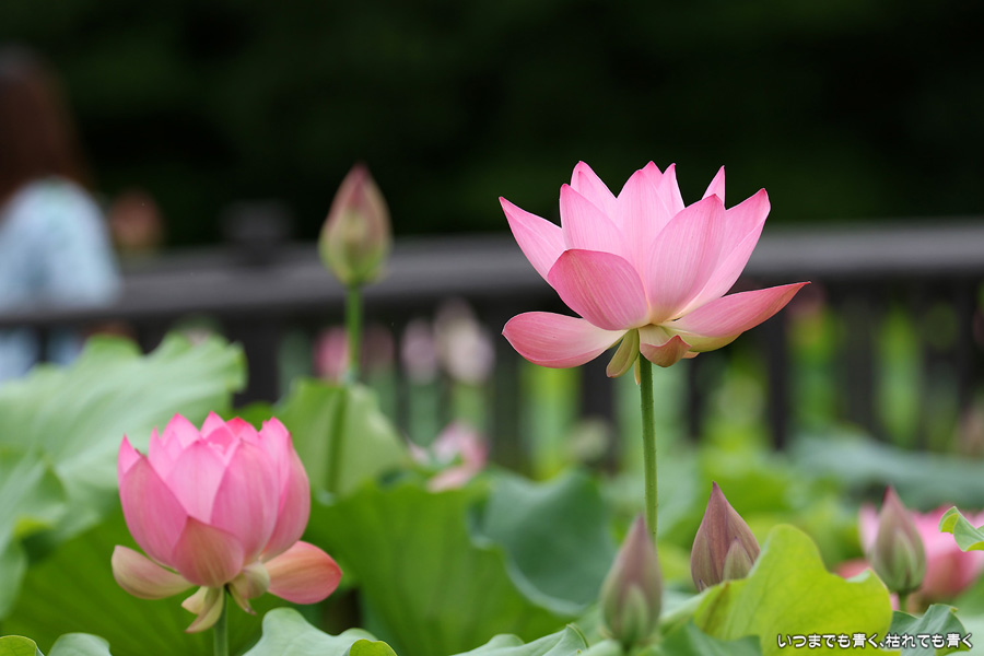 最後に訪れた2017年は八橋遊歩道の老朽化で中に入ることができませんでしたが、久しぶりに訪れてみると八橋遊歩道も新しく整備されいて、蓮の花も美しい花をたくさん咲かせてくれていました。ここの蓮の花は一重のピンクの花ばかりです。