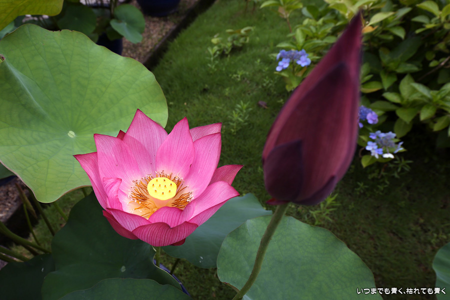法金剛院は10年ぶりの拝観となります。雰囲気の好きなお寺なのですが、紫陽花と蓮の花の時期を逃すとなかなか訪れることがありません。今年は完全予約制で午前だけの限定拝観となっています。鉢植えの蓮の花はきれいに咲いていますが、蓮池は一面緑で花はほとんどありませんでした。