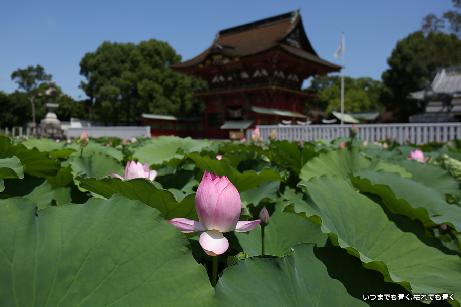 2022年7月2日に撮影した、愛知県岡崎市・伊賀八幡宮の蓮の写真です。