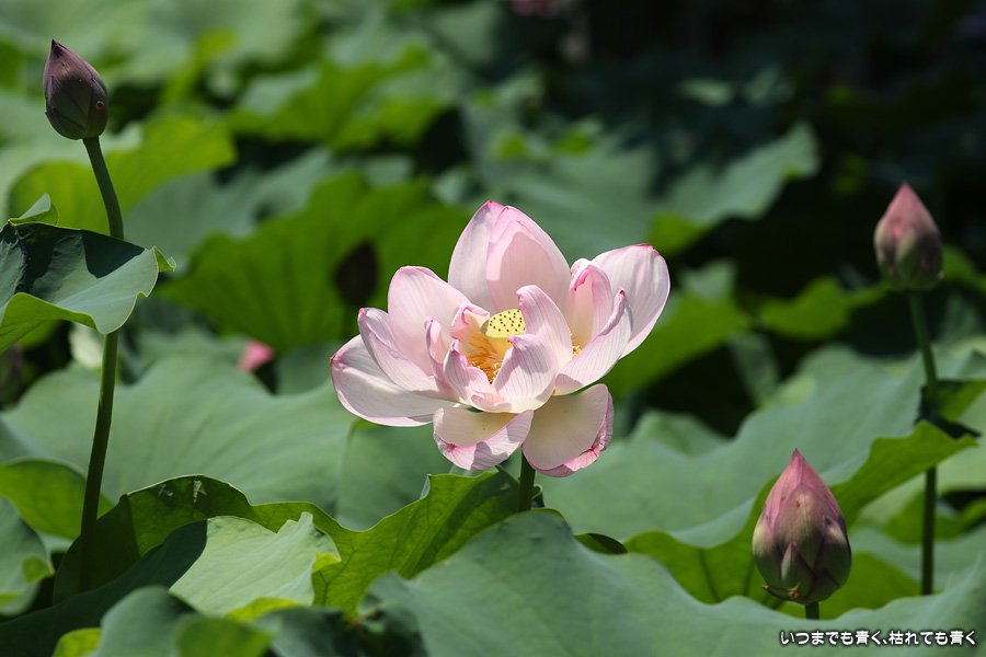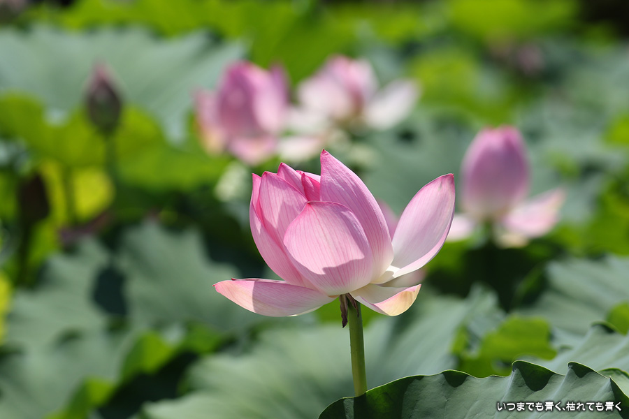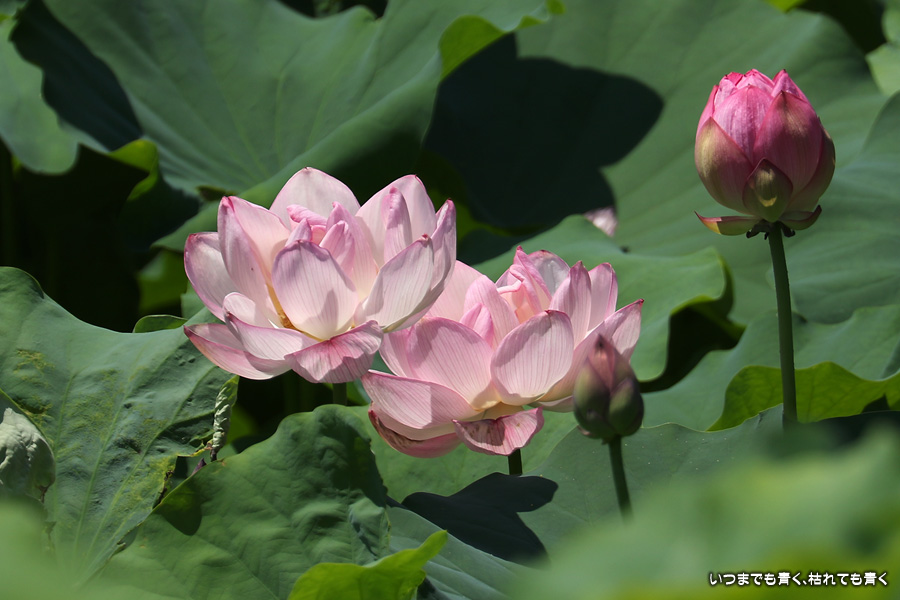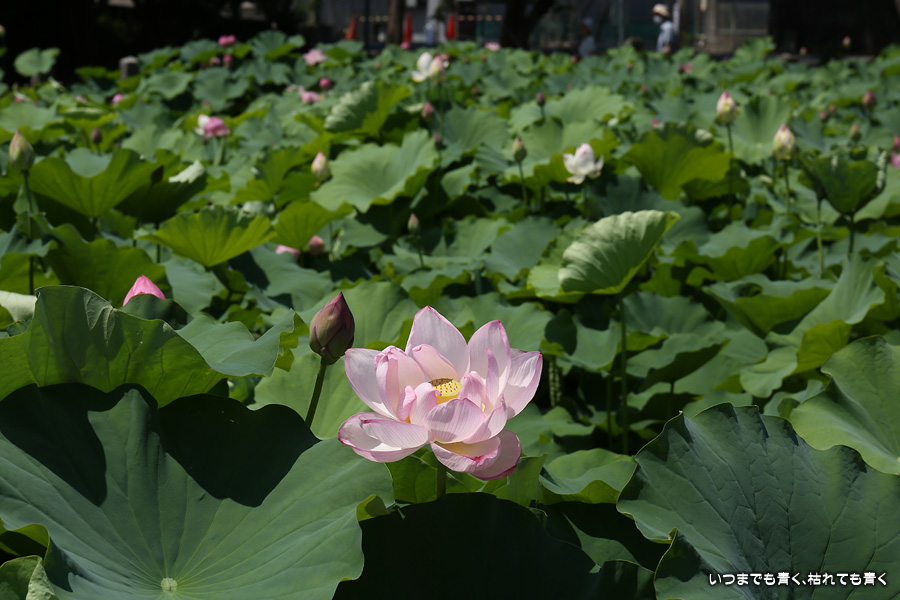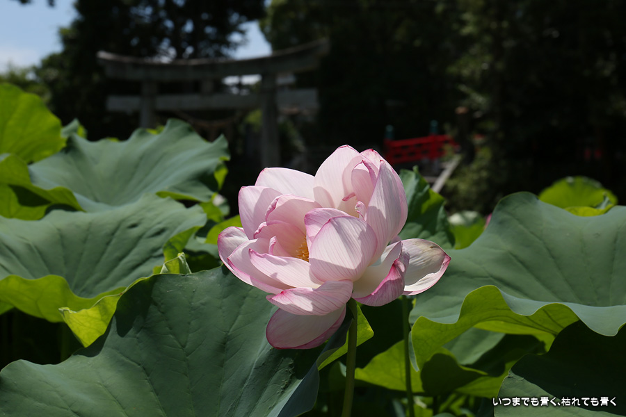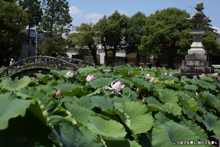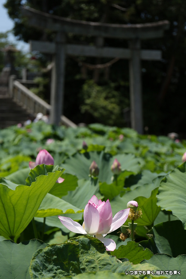 紫陽花が終わりましたので、今週は蓮の花を撮影するために岡崎市の伊賀八幡宮にやってきました。伊賀八幡宮に蓮の花を見に来るのは5年ぶりとなります。5年前は蓮の密集度も低く池の水面が大きく見えていましたが、今回は池一面に立派な蓮の葉が高く伸びて池の水面はまったく見えません。ただ、来る時間が少し遅く、きれいに開いている花はそう多くはなく、中途半端な開き方だったり、きれいに開いていた花も写真を撮っているうちに閉じてしまったり、強い日差しのせいか花びらの傷んでいる花もあったりとか、撮影対象の花が限られてしまい写真としては面白味のないものが多くなってしまいました。