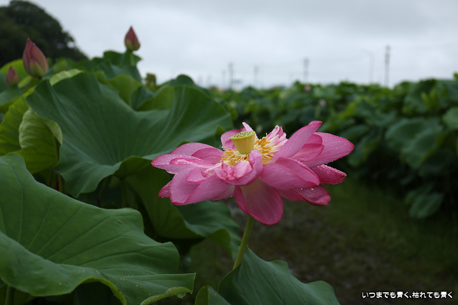 娘を所用で名古屋まで送ったあと迎えまでの空き時間で、愛西市の森川花はす田に行ってきました。森川花はす田の脇にはクルマを止めることができますが、となりの道の駅「立田ふれあいの里」に置くこともできます。天候は雨で蓮の花の写真を撮るには都合が良いのですが、カメラが濡れたりレンズに水滴がついたりするのを気にしながらの撮影になります。望遠レンズも持っていきましたが、花が手の届くところにありますので標準ズームだけの撮影で特に不都合はありませんでした。蓮の花は美しいものが多かったですし、花びらに付いた水滴が美しくて夢中でシャッターを押していました。足元がけっこうなぬかるみなので、雨の日には長靴で行くことが必須です。私は初めてでしたので普通の靴で行ったのでけっこう大変でした。娘を迎えに行く時間もあったので、ゆっくりのんびりと撮影というわけにはいきませんでしたが、短い時間でもけっこう楽しめました。