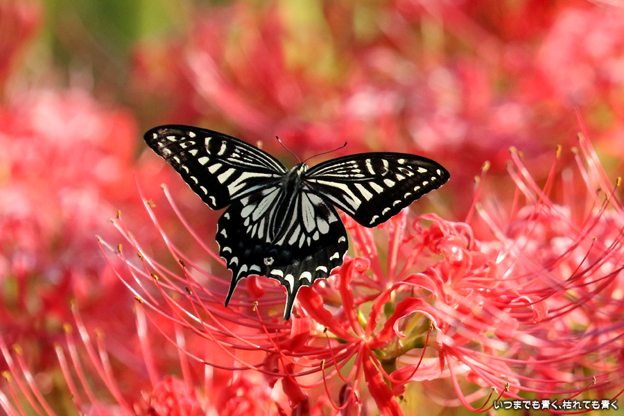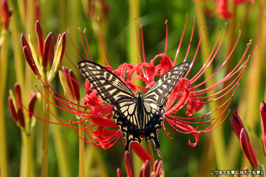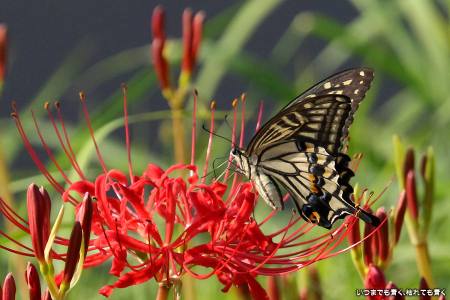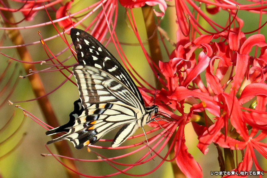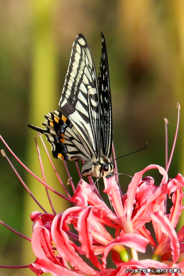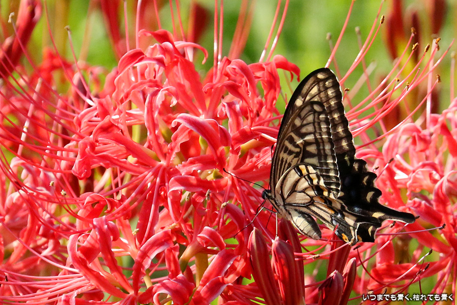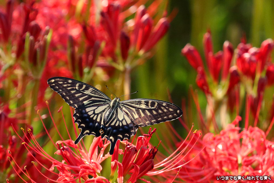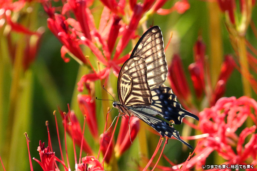 彼岸花は寂しい状況でしたが、アゲハ蝶は花に寄ってきていて、いつものように彼岸花とアゲハ蝶の写真を撮りました。これも彼岸花の撮影の楽しみのひとつです。