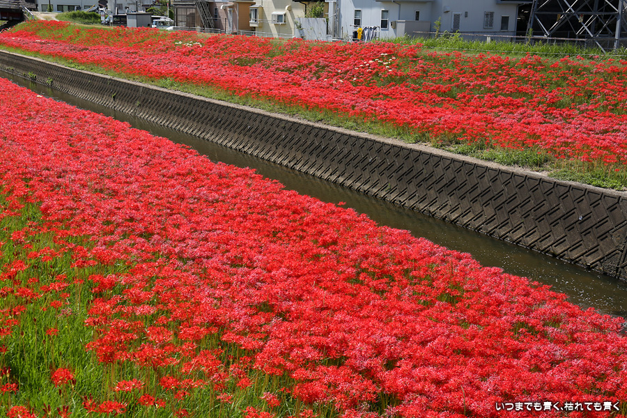 2023年10月2日(月)に撮影した、愛知県豊田市・逢妻女川の彼岸花の写真です。