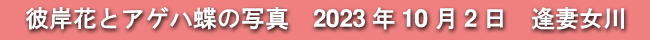 2023年10月2日(月)に撮影した、愛知県豊田市・逢妻女川の彼岸花とアゲハ蝶の写真です。