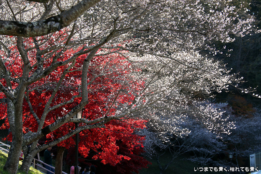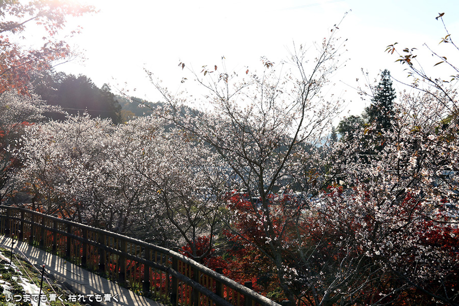 2014年11月 日に撮影した、愛知県豊田市・小原ふれあい公園の紅葉と四季桜の写真です。