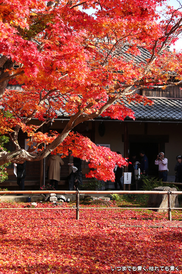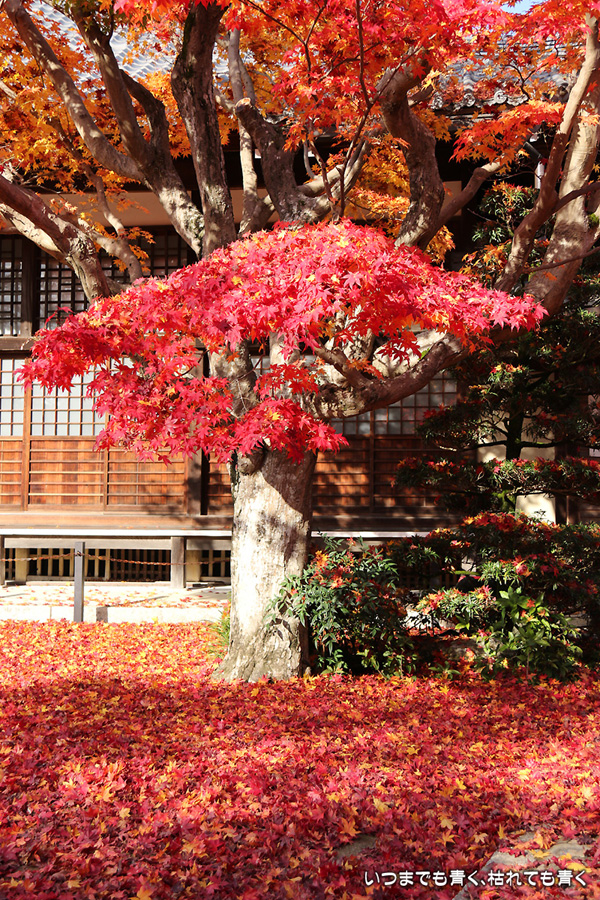 紅葉もそろそろ終わりです。岐阜羽島に行ったついでに京都に足を延ばして、枝に残った紅葉と落ち葉の紅葉が織りなす景色を楽しんできました。久しぶりの京都ひとり旅、自由に効率よく動ける楽しさも良いものです。源光庵は今年のJRの盛秋「そうだ京都、いこう」のキャンペーンとなっているお寺です。悟りの窓と迷いの窓から見える紅葉を見たくて訪れました。写真におさめたかったのですが、紅葉の時期は撮影禁止だそうです。